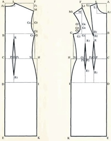 После выполнения базовой конструкции мы можем конструировать различные варианты платья. Платье-редингот характеризуется прилеганием по линии талии и расклешением внизу. Подробнее...